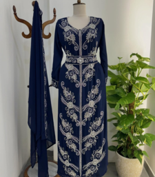 | Product Name | Elegant Navy Blue Hand Embroidered Stitched Kaftan With Belt And Dupatta | Suited For All Occasion | |