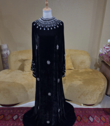 Black velvet stitched kaftan with heavy crystal work & designer neckline