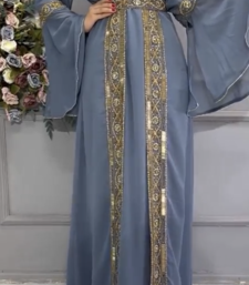 | Product Name | Grey Moroccan Kaftan With Heavy Golden Embroidery & Flared Sleeves | |