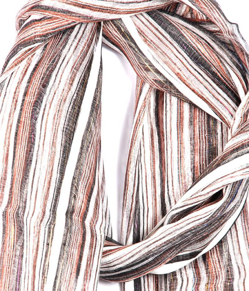 Favola brown, copper and black shaded thin vertical strip design stole