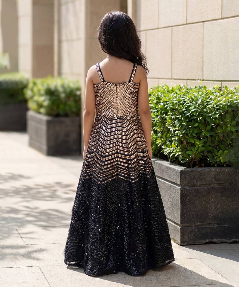 | Product Description | This Black Net Gown With Gold Embroidery Exudes Luxury And Elegance. The Intricate Detailing Adds Richness, While The Sheer Fabric Creates A Dramatic And Flowy Silhouette. Ideal For Evening Events, It Pairs Beautifully With Statement Accessories For A Bold And Glamorous Appearance.