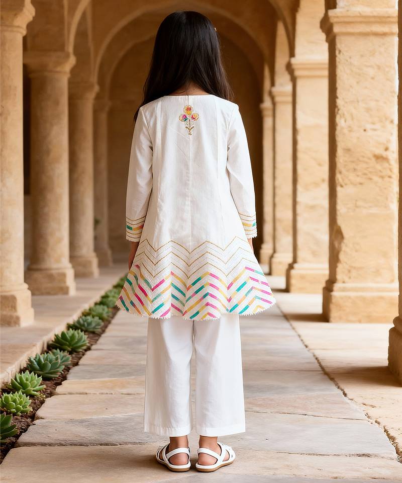 White embroidered cotton kurti set