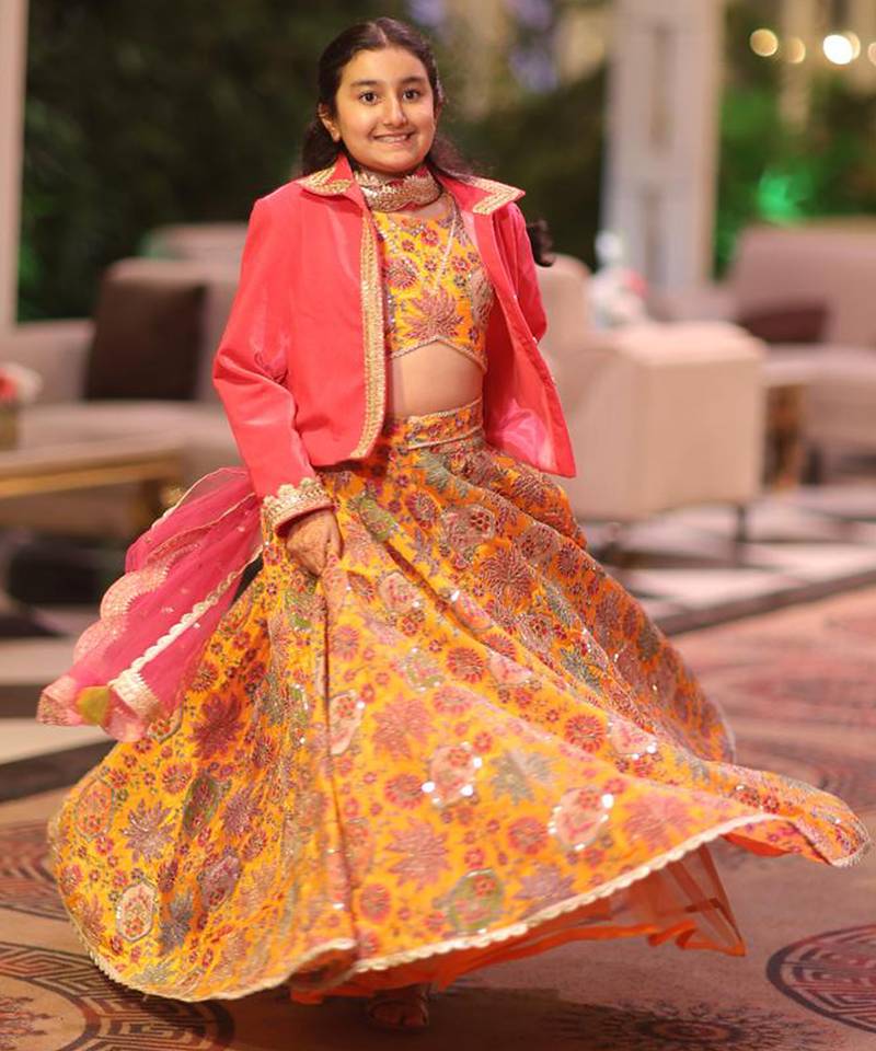 Yellow embroidered cotton lehenga set