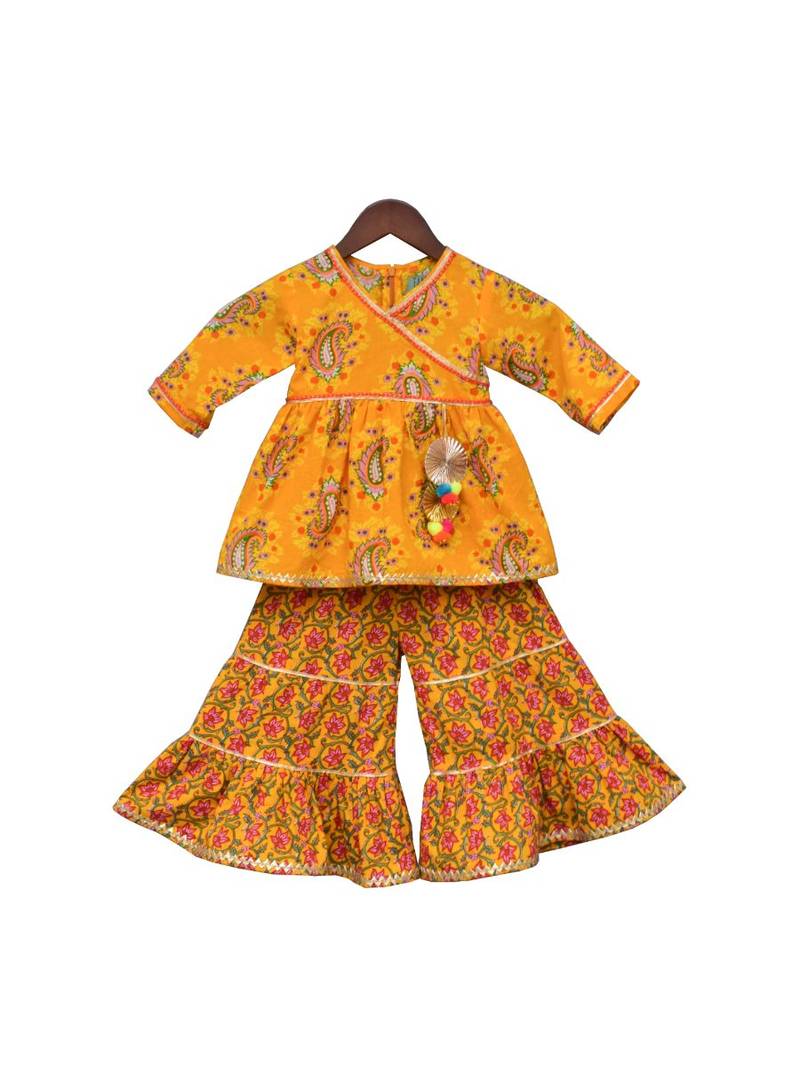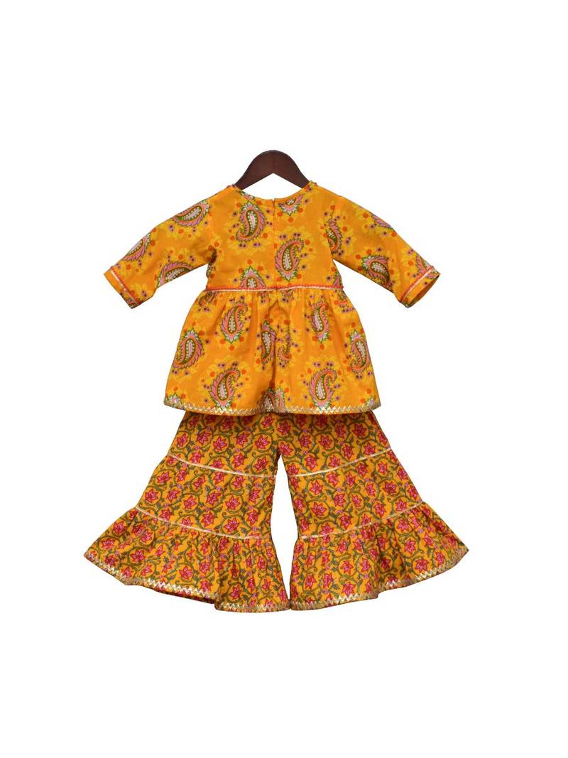 Yellow printed kurti sharara