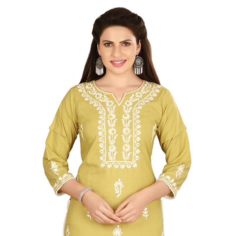 | Product Name | Mustard Embroidered Cotton Long Kurtis | |