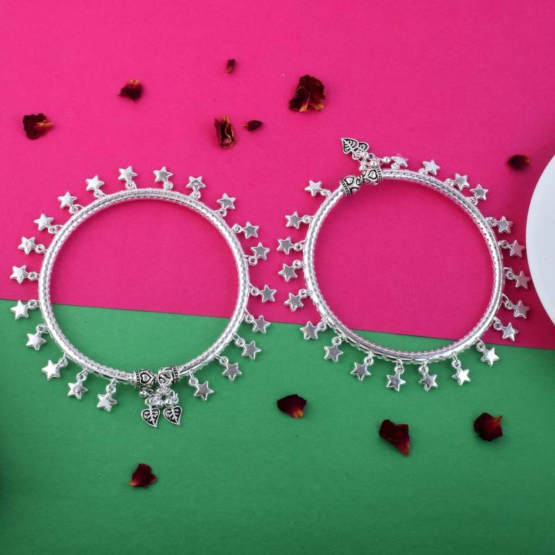 Attractive silver color oxidised anklet perfect for bridal wear, parties, and indian cultural styling
