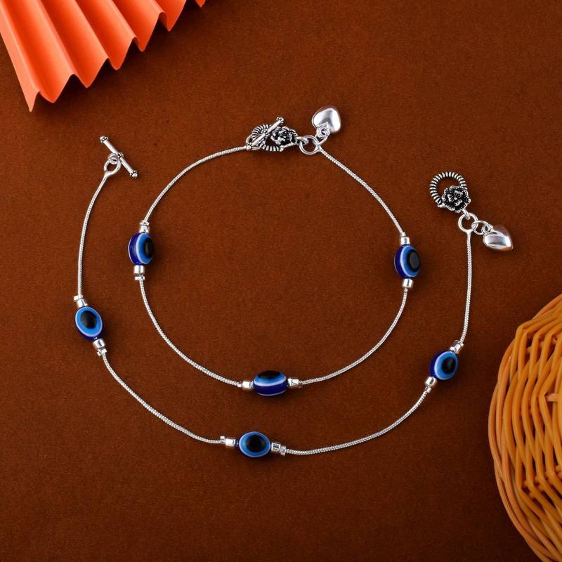 Product Name Beautiful Blue Color Evil Eye Oxidised Anklet Designed For Bridal Wear, Parties, And Cultural Styling