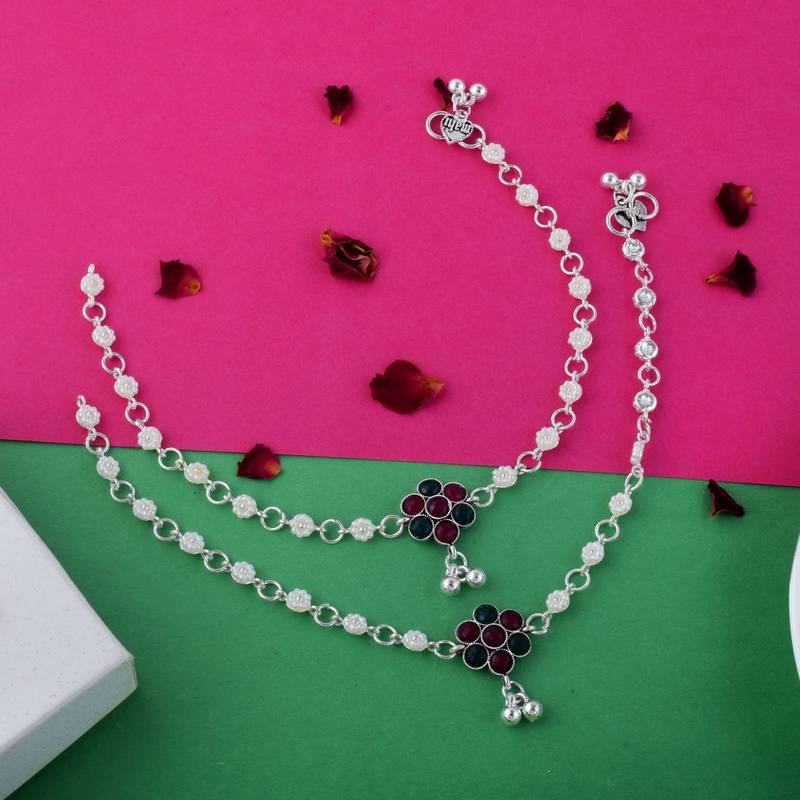 Product Description | Anklet Length: 26.00 Cm X Width: 2.50 Cm | Metal: Alloy With Good Quality Silver Plated | Color: Maroon &Amp; Green | Stone: Glass Stone | Gross Weight: 22.00 Grams | Package Content: 1 Pair Of Anklet | Care Instruction : Avoid Heat &Amp; Chemicals Like Perfume, Deo, Alcohol, Etc. | Clean With Dry Cotton Cloth | Pack In An Air Tight Container After Use. |