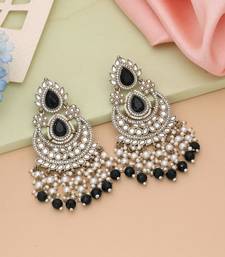 | Product Description | Earring Length: 10.50 Cm X Width: 4.60 Cm | Metal: Alloy With Good Quality Mehendi Gold Plated | Color: Black | Stone: Kundan & Imitation Pearl | Gross Weight: 65.00 Grams | Package Content: 1 Pair Of Earrings | Back Finding: Post With Friction Back X Earring Style: Dangle |