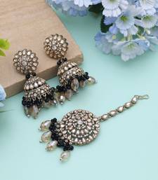 | Product Description | Earring Length: 6.50 Cm X Width: 3.00 Cm | Maang Tikka Length: 12.00 Cm X Width: 3.60 Cm | Metal: Alloy With Good Quality Mehndi Gold Plated | Color: Black | Stone: Kundan | Gross Weight: 66.00 Grams | Package Content: 1 Pair Of Earrings/1 Piece Of Maang Tikka | Back Finding: Post With Friction Back X Earring Style: Jhumka |