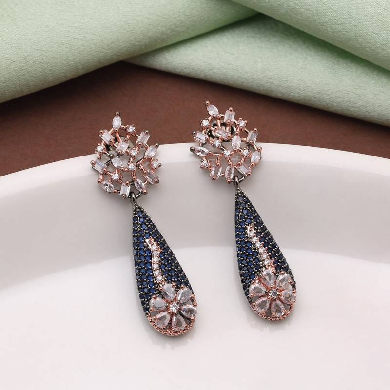Blue color american diamond earrings