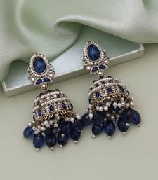 | Product Description | Earring Length: 7.50 Cm X Width: 3.00 Cm | Metal: Alloy With Good Quality Mehendi Gold Plated | Color: Blue | Stone: Kundan & Imitation Pearl | Gross Weight: 65.00 Grams | Package Content: 1 Pair Of Earrings | Back Finding: Post With Friction Back X Earring Style: Jhumka |
