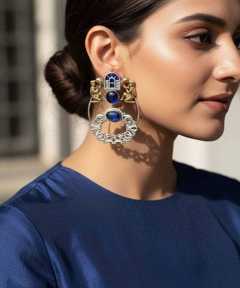 | Product Name | Blue Color Oxidised Earrings Designed With Stunning Dual Tone Detailing For Bold Festive Fashion | |