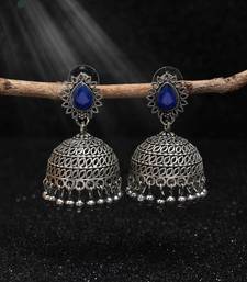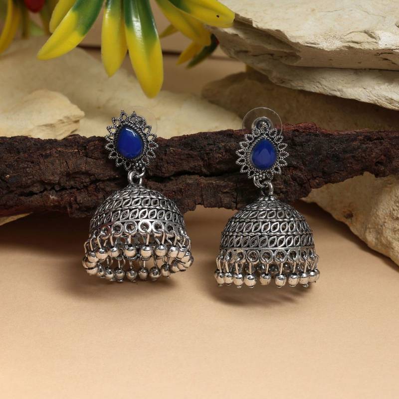 Product Description | Earring Length: 4.20 Cm X Width: 2.50 Cm | Metal: Alloy With Good Quality Silver Plated | Color: Blue | Stone: Glass Stone | Gross Weight: 17.00 Grams | Package Content: 1 Pair Of Earring | Back Finding: Post With Friction Back X Earring Style: Jhumka |