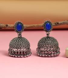Product Description | Earring Length: 4.00 Cm X Width: 2.50 Cm | Metal: Alloy With Good Quality Silver Plated | Color: Blue | Stone: Glass Stone | Gross Weight: 17.00 Grams | Package Content: 1 Pair Of Earring | Back Finding: Post With Friction Back X Earring Style: Jhumka |