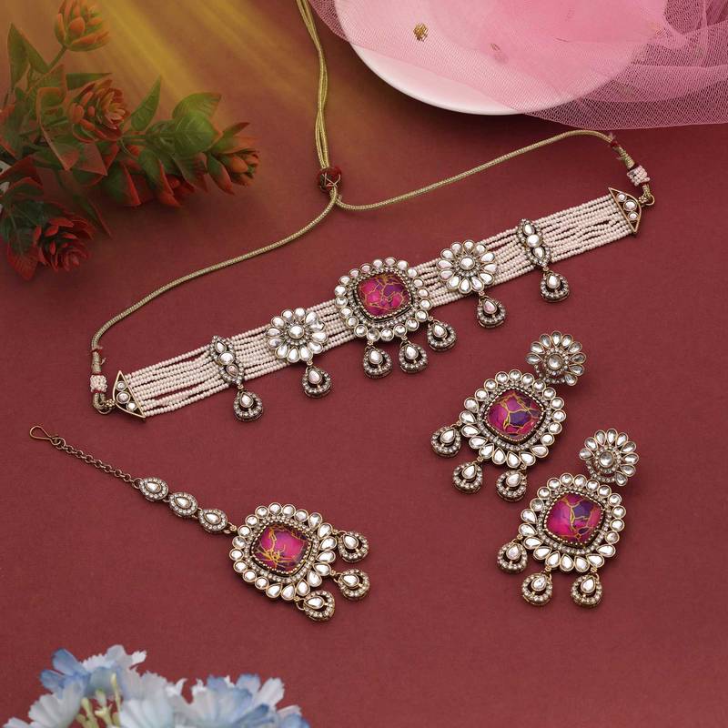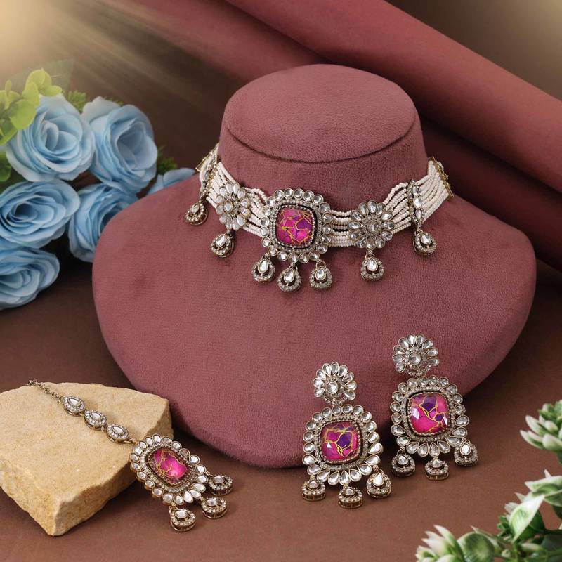 | Product Name | Bold Magenta Color Choker Kundan Necklace Set Adding Charm To Your Special Occasions | |