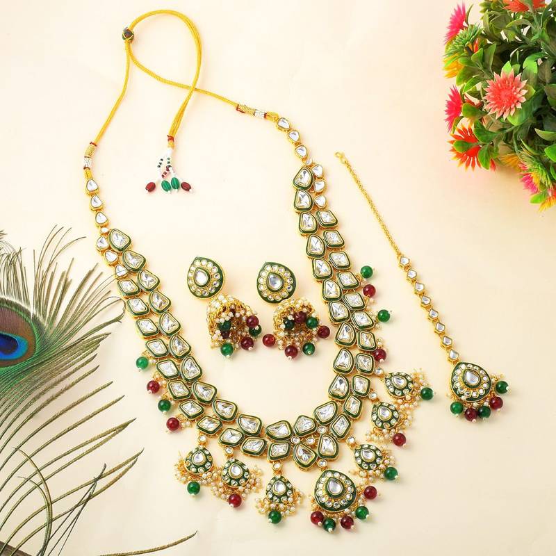 Product Name | Bridal Maroon & Green Color Kundan Necklace Set With Stone Design | |