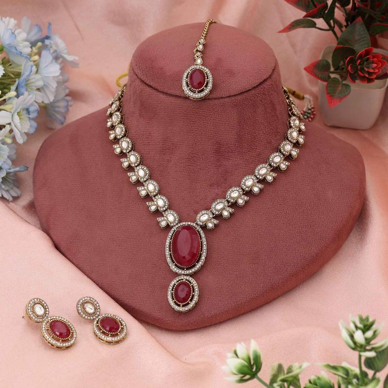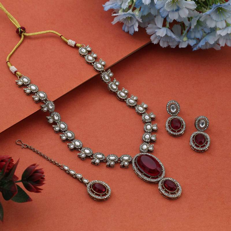 | Product Name | Bright Red Color Kundan Necklace Set Crafted For Classic Bridal And Festive Traditions | |