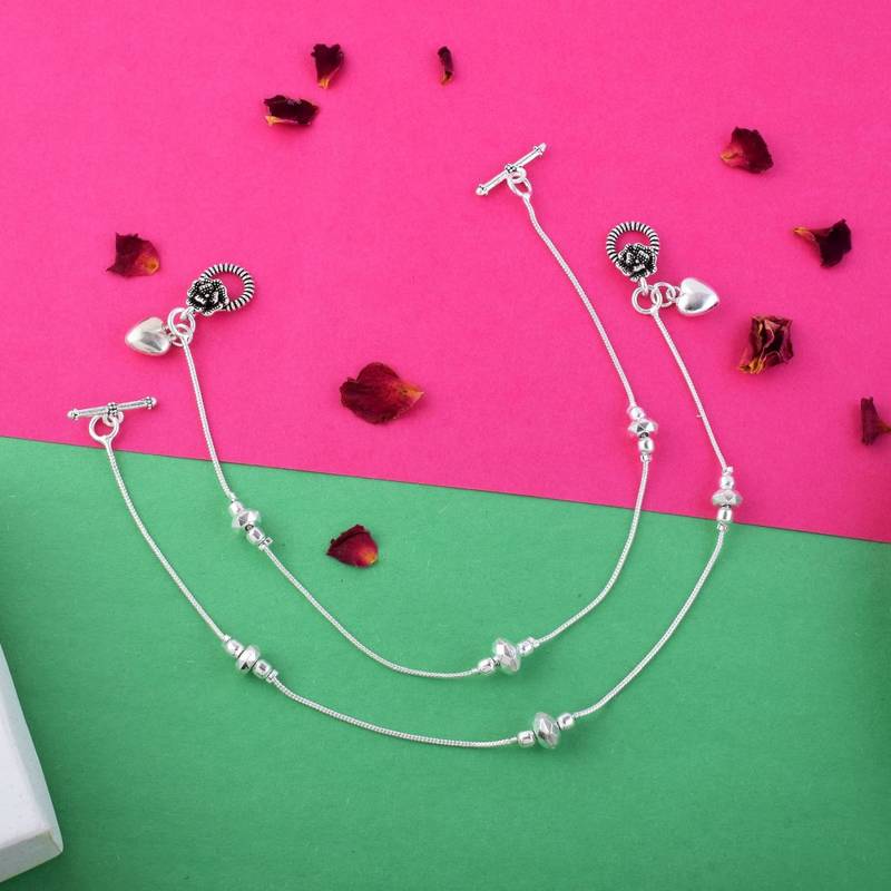 Elegant silver color oxidised anklet designed with handmade work for brides and daily wear styling