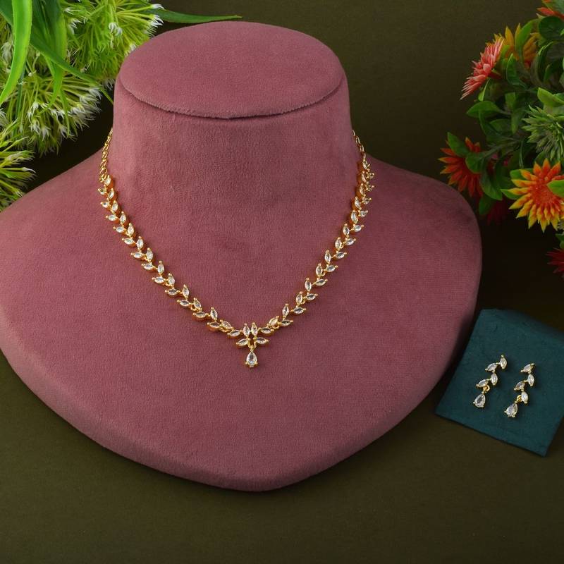 Product Name | Gold Color American Diamond Necklace Set For Weddings And Special Events | |