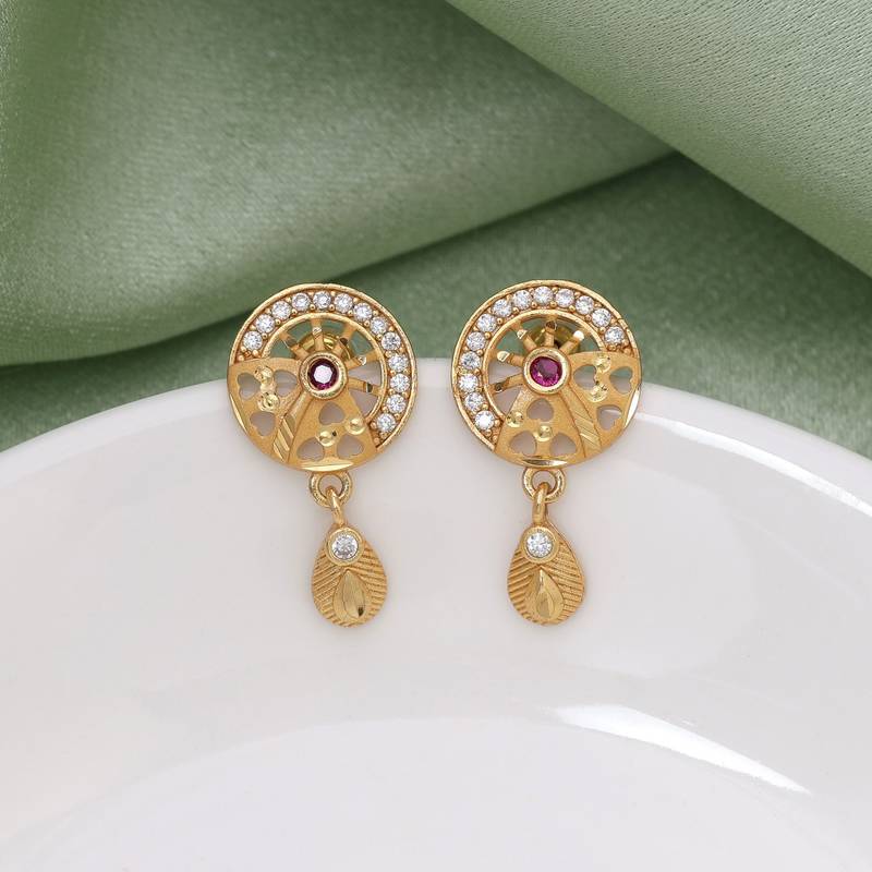 | Product Description | Earring Length: 2.70 Cm X Width: 1.40 Cm | Metal: Alloy With Good Quality Gold Plated | Color: Gold | Stone: Micro American Diamond | Gross Weight: 13.00 Grams | Package Content: 1 Pair Of Earring | Back Finding: Post With Friction Back X Earring Style: Drop |