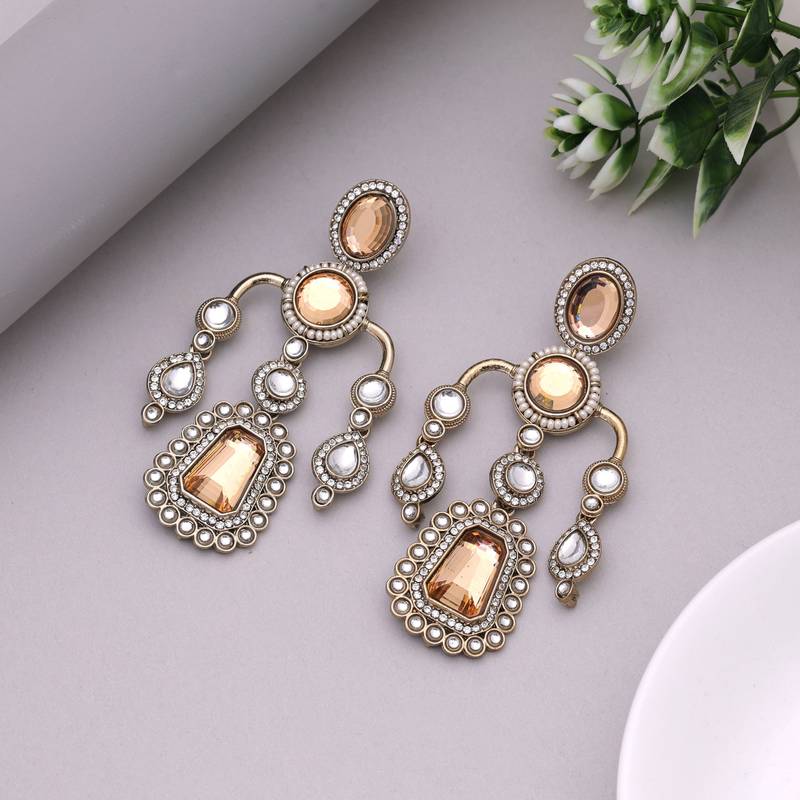 | Product Description | Earring Length: 9.00 Cm X Width: 4.50 Cm | Metal: Alloy With Good Quality Mehendi Gold Plated | Color: Gold | Stone: Kundan | Gross Weight: 50.00 Grams | Package Content: 1 Pair Of Earrings | Back Finding: Post With Friction Back X Earring Style: Dangle |