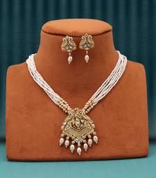 | Product Description | Necklace Length: 42.00 Cm X Width: 1.00 Cm | Pendant Length: 6.00 Cm X Width: 4.30 Cm | Earring Length: 4.00 Cm X Width: 2.00 Cm | Metal: Alloy With Good Quality Matte Gold Plated | Color: Gold | Stone: Glass Stone & Imitation Pearl | Gross Weight: 57.00 Grams | Package Content: 1 Piece Of Necklace/1 Pair Of Earrings | Back Finding: Post With Friction Back X Earring Style: Drop |