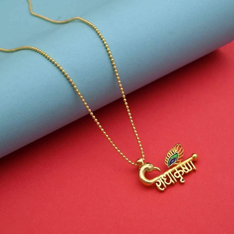 Product Name | Gold Color Peacock Inspired Radha Krishna Name Mala Chain Necklace | |