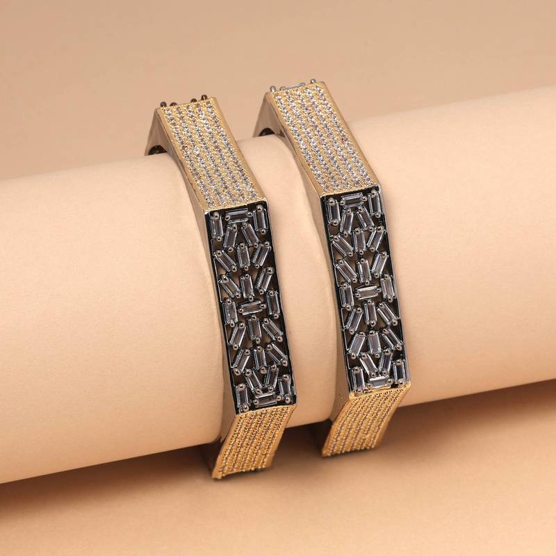 | Product Description | Bangle Size: 2.6 | Metal: Brass With Good Quality Gold & Silver Plated | Color: Gold & Silver | Stone: American Diamond | Gross Weight: 69.00 Grams | Package Content: 1 Pair Of Bangle Size: 2.6 |