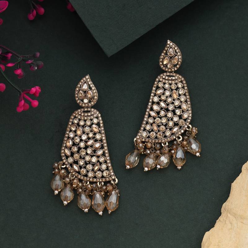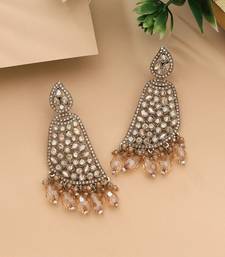 | Product Description | Earring Length: 8.00 Cm X Width: 3.00 Cm | Metal: Alloy With Good Quality Mehndi Gold Plated | Color: Gold & White | Stone: Kundan & Imitation Pearl | Gross Weight: 39.00 Grams | Package Content: 1 Pair Of Earrings | Back Finding: Post With Friction Back X Earring Style: Dangle |
