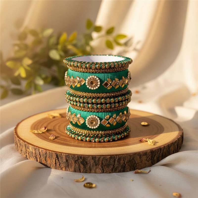 | Product Description | Bangle Size: 2.6 | Material: Thread | Color: Green | Stone: Mirror | Gross Weight: 155.00 Grams | Package Content/ 1 Set Of Bangle |