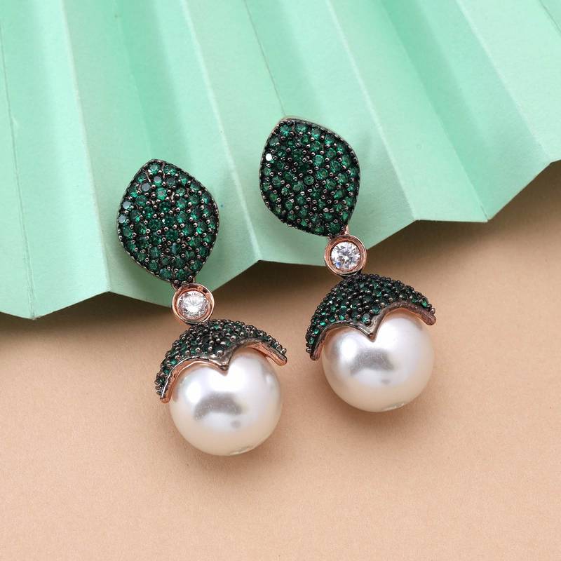 | Product Description | Earring Length: 3.50 Cm X Width: 1.50 Cm | Metal: Brass With Good Quality Rose Gold Plated | Color: Green | Stone: American Diamond & Imitation Pearl | Gross Weight: 13.00 Grams | Package Content: 1 Pair Of Earrings | Back Finding: Post With Friction Back X Earring Style: Drop |