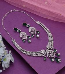 | Product Description | Chain Length: 16.00 Cm | Necklace Length: 22.00 Cm X Width: 1.50 Cm | Earring Length: 7.00 Cm X Width: 2.10 Cm | Metal: Brass With Good Quality Silver Plated | Color: Green | Stone: American Diamond | Gross Weight: 78.00 Grams | Package Content: 1 Piece Of Necklace/ 1 Pair Of Earring | Back Finding: Post With Friction Back X Earring Style: Dangle |