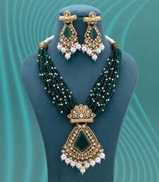 | Product Description | Adjustable Rope | Necklace Length: 40.00 Cm X Width: 4.40 Cm | Pendant Length: 8.50 Cm X Width: 6.00 Cm | Earring Length: 8.50 Cm X Width: 3.00 Cm | Metal: Brass With Good Quality Gold Plated | Color: Green | Stone: American Diamond & Monalisa Stone & Imitation Pearl | Gross Weight: 221.00 Grams | Package Content: 1 Piece Of Necklace/ 1 Pair Of Earring | Back Finding: Post With Friction Back X Earring Style: Dangle |