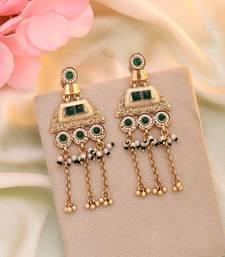 | Product Description | Earring Length: 7.70 Cm X Width: 3.00 Cm | Metal: Alloy With Good Quality Matte Gold Plated | Color: Green | Stone: Glass Stone & Beads | Gross Weight: 22.00 Grams | Package Content: 1 Pair Of Earring | Back Finding: Post With Friction Back X Earring Style: Dangle |