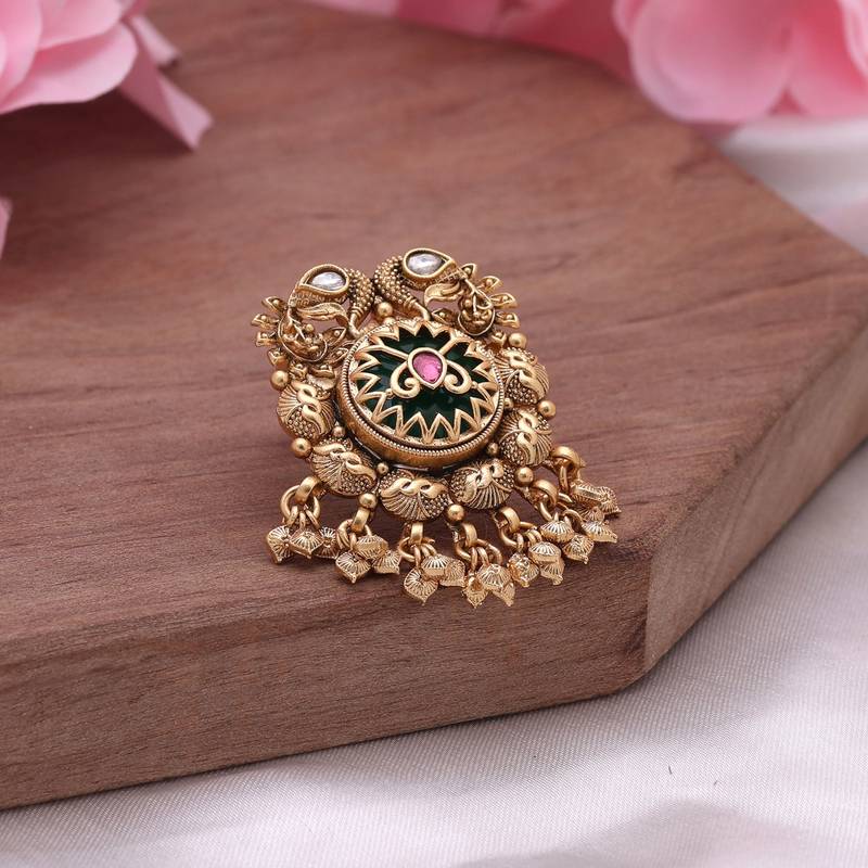 | Product Description | Ring Size: Adjustable | Diameter Length: 3.00 Cm X Width: 4.50 Cm | Metal: Alloy With Good Quality Gold Plated | Color: Green | Stone: Glass Stone | Gross Weight: 17.00 Grams | Package Content: 1 Piece Of Rings |