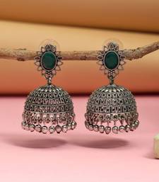 Product Description | Earring Length: 4.20 Cm X Width: 2.50 Cm | Metal: Alloy With Good Quality Silver Plated | Color: Green | Stone: Glass Stone | Gross Weight: 20.00 Grams | Package Content: 1 Pair Of Earring | Back Finding: Post With Friction Back X Earring Style: Jhumka |