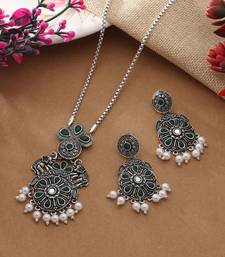 | Product Description | Adjustable Chain | Necklace Length: 42.00 Cm X Width: 0.30 Cm | Pendant Length: 8.00 Cm X Width: 4.00 Cm | Earring Length: 5.50 Cm X Width: 2.70 Cm | Metal: Alloy With Good Quality Silver Plated | Color: Green | Stone: Glass Stone & Beads | Gross Weight: 52.00 Grams | Package Content: 1 Piece Of Necklace/1 Pair Of Earrings | Back Finding: Post With Friction Back X Earring Style: Dangle |