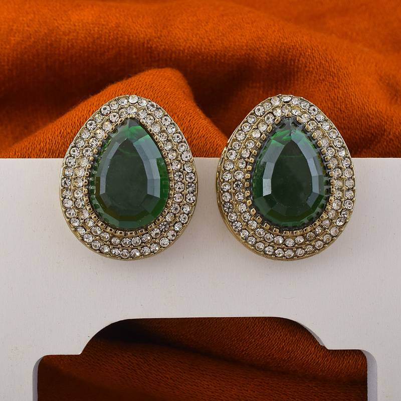 | Product Description | Earring Length: 2.70 Cm X Width: 2.30 Cm | Metal: Alloy With Good Quality Mehndi Gold Plated | Color: Green | Stone: Kundan | Gross Weight: 18.00 Grams | Package Content: 1 Pair Of Earrings | Back Finding: Post With Friction Back X Earring Style: Stud |