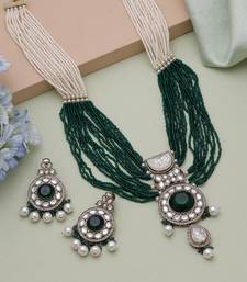 | Product Description | Adjustable Rope | Necklace Length: 46.00 Cm X Width: 3.00 Cm | Pendant Length: 11.00 Cm X Width: 3.70 Cm | Earring Length: 5.80 Cm X Width: 3.00 Cm | Metal: Alloy With Good Quality Mehandi Gold Plated | Color: Green | Stone: Kundan & Imitation Pearl | Gross Weight: 115.00 Grams | Package Content: 1 Piece Of Necklace/1 Pair Of Earrings | Back Finding: Post With Friction Back X Earring Style: Dangle |