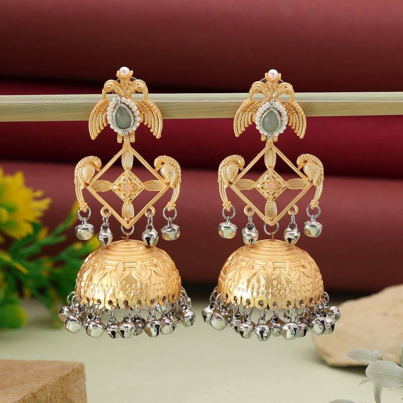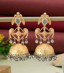 | Product Description | Earring Length: 8.50 Cm X Width: 4.00 Cm Metal: Alloy With Good Quality Gold Plated | Color: Grey | Stone: Glass Stone | Gross Weight: 44.00 Grams | Package Content: 1 Pair Of Earring | Back Finding: Post With Friction | Earring Style: Jhumka |
