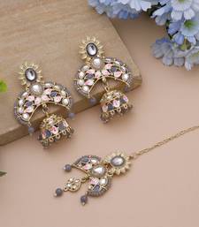| Product Name | Grey Color Meena Work Kundan Earrings Tikka Set | |