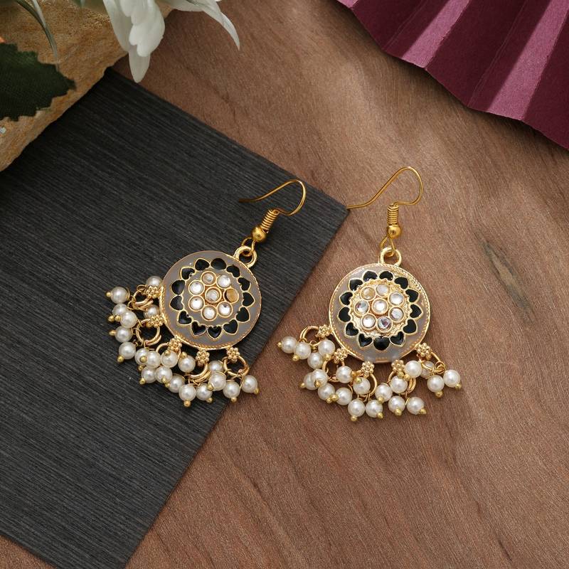 Grey color meenakari earrings
