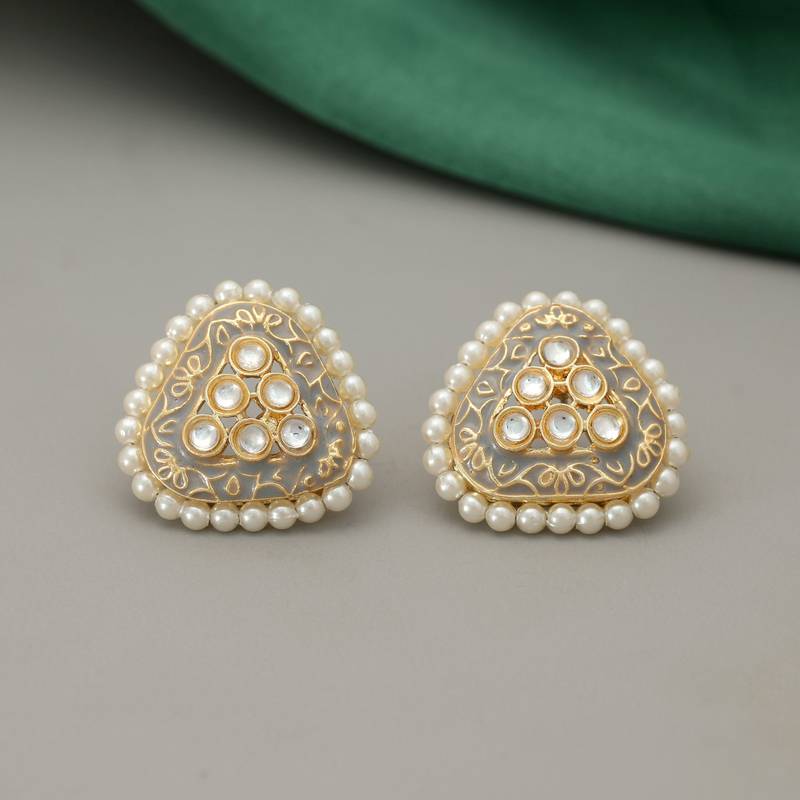 | Product Description | Earring Length: 2.70 Cm X Width: 2.70 Cm | Metal: Alloy With Good Quality Golod Plated | Color: Grey | Stone: Glass Stone | Gross Weight: 11.00 Grams | Package Content: 1 Pair Of Earrings | Back Finding: Post With Friction Back X Earring Style: Stud |