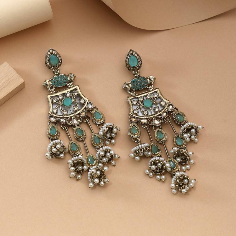 | Product Description | Earring Length: 11.00 Cm X Width: 3.30 Cm | Metal: Alloy With Good Quality Mehndi Gold Plated | Color: Light Green | Stone: Kundan & Beads | Gross Weight: 64.00 Grams | Package Content: 1 Pair Of Earring | Back Finding: Post With Friction Back X Earring Style: Dangle |
