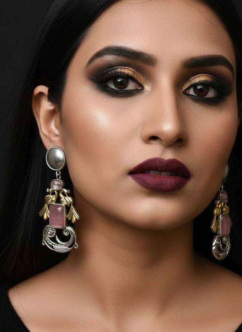 Product Name Light Pink Color Oxidised Earrings Featuring Delicate Dual Tone Craftsmanship For Charming Ethnic Appeal