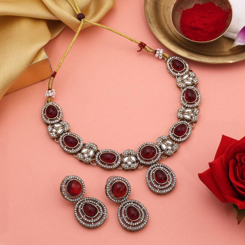 Product Description | Adjustable Rope | Necklace Length: 22.00 Cm X Width: 1.70 Cm | Earring Length: 4.50 Cm X Width: 2.10 Cm | Metal: Alloy With Good Quality Mehandi Gold Plated | Color: Maroon | Stone: Kundan | Gross Weight: 60.00 Grams | Package Content: 1 Piece Of Necklace/1 Pair Of Earring | Back Finding: Post With Friction Back X Earring Style: Drop |
