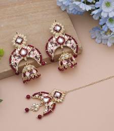 | Product Name | Maroon Color Meena Work Kundan Earrings Tikka Set | |