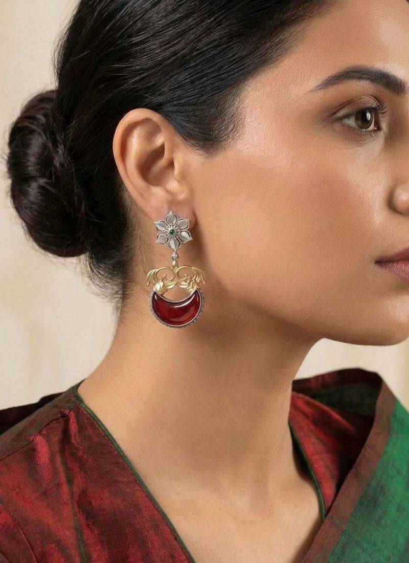 | Product Name | Maroon Color Oxidised Earrings Featuring Dual Tone Artistry For Sophisticated Cultural Celebrations | |