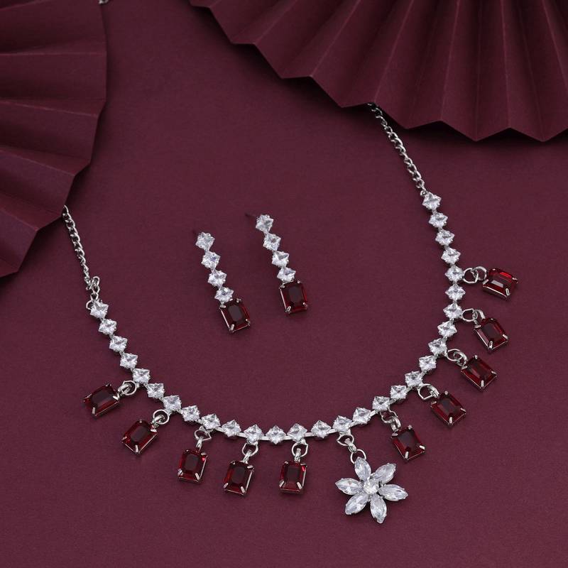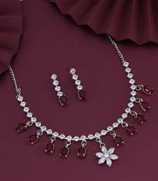 | Product Description | Adjustable Chain | Necklace Length: 16.00 Cm X Width: 2.00 Cm | Earring Length: 3.00 Cm X Width: 0.60 Cm | Metal: Alloy With Good Quality Silver Plated | Color: Maroon | Stone: Glass Stone | Gross Weight: 23.00 Grams | Package Content: 1 Piece Of Necklace/1 Pair Of Earrings | Back Finding: Post With Friction Back X Earring Style: Drop |